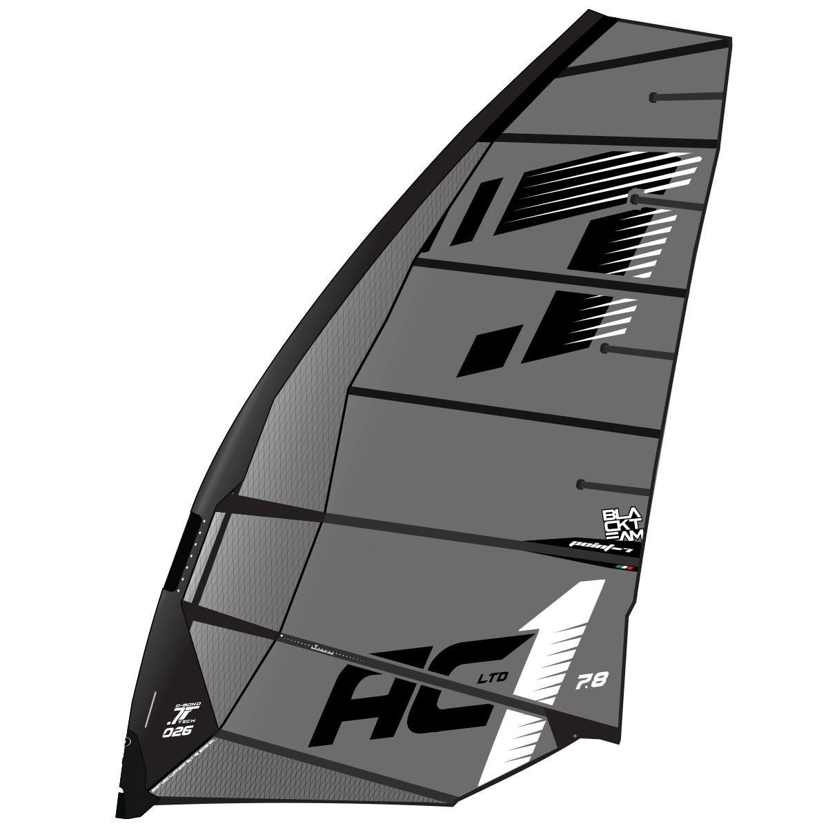 The fastest sail in slalom racing, the AC-1 is named after Andrea Cucchi, combining his initials and sail number. As the founder of Point-7, head of development, and team manager, Cucchi had a vision to create a group of young professionals who could push boundaries together under the banner of the “BLACK TEAM.”