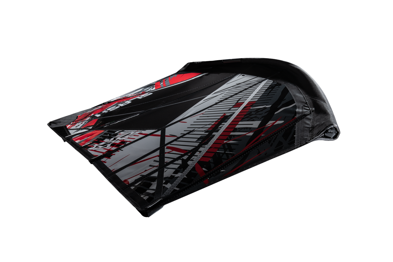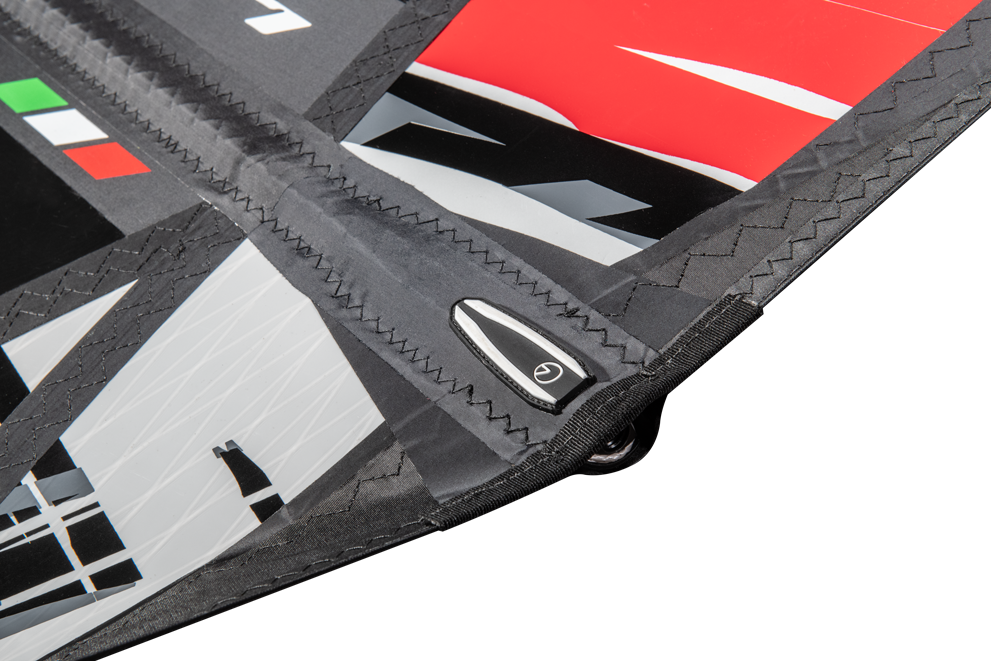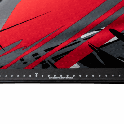 The deepest part of the profile, located on the leeward side. Measured as depth (how “fat” the sail is) and position (how far forward or back it sits). Draft generates the power/lift of the sail. The SLASH carries a completely flat profile, built to slice the air with zero resistance. Only a minimal hint of shape sits on the lower batten—no tension needed—just enough to lock in stability. The real magic comes from the precise mast rotation and the Dacron mast panel: they create depth only when it matters, unleashing raw acceleration and explosive pop for going massive in the air.